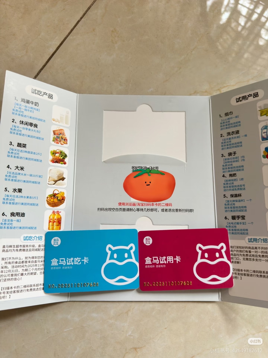 网友“来啦蕾拉”发帖称,最近其所住的小区,每层每户人家的门把手上,都挂了一个礼品袋,里面是一些盒马宣传资料。在这些资料中,夹杂着两张“试吃卡”“试用卡”。扫码后,进入和客服对话页面,被告知参加试吃活动的,需下载一个链接领取试吃资格。该网友比较细心,发现下载安装的App并非盒马官方App,并有异地手机号码跟进指导后续操作,有点不对劲,立即退出。后咨询盒马官方发现,这应该是一种新型骗局。