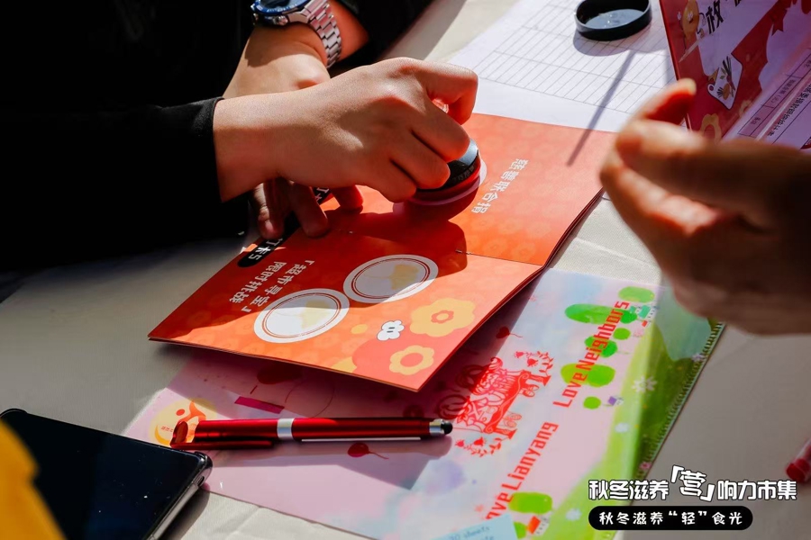 走进市集,每位居民一进门就领到了一本“能量平衡记账本”,相当于开启了专属的健康闯关路。随着“活力金秋”健康韵律操的音乐响起,欢快的节奏一下子把现场气氛带热。